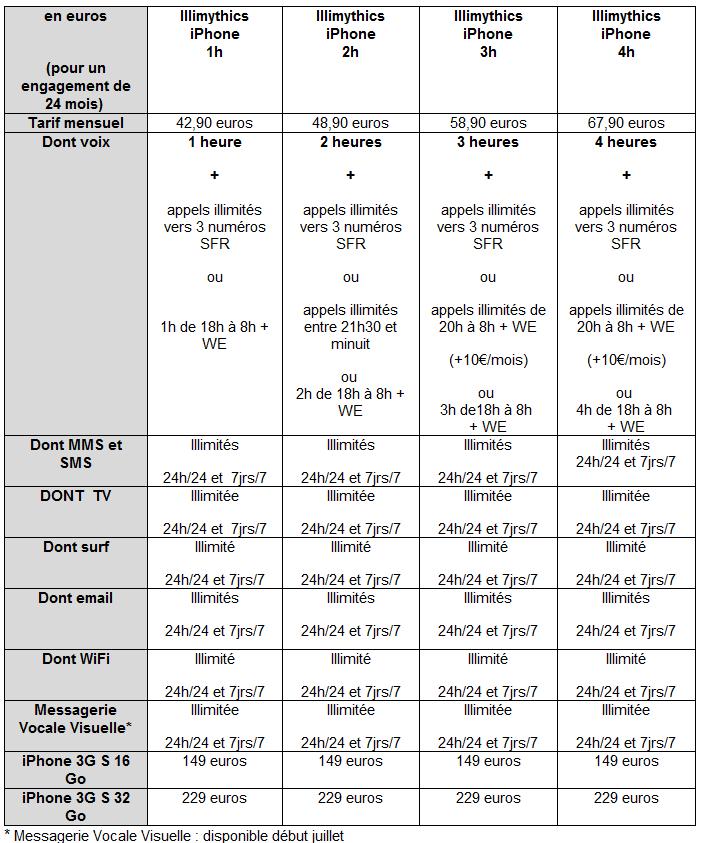 Alors qu’Orange et Bouygues Télécom proposent le dernier d’Apple à un prix quasiment identique, SFR a annoncé aujourd’hui les tarifs en vigueur pour acquérir un iPhone 3G S avec forfait. Sans grande surprise, le deuxième opérateur du pays ne joue pas la carte de la concurrence puisqu’il propose l’iPhone 3G S à 149 euros pour la version 16 Go tandis que la version supérieure, celle à 32 Go, sera commercialisée à 229 euros avec un forfait Illimythics dédié à l’iPhone. C’est donc une copie conforme des tarifs pratiqués par Orange. Finalement, seul Bouygues Télécom se démarque un tant soit peu avec une baisse de 10 euros.