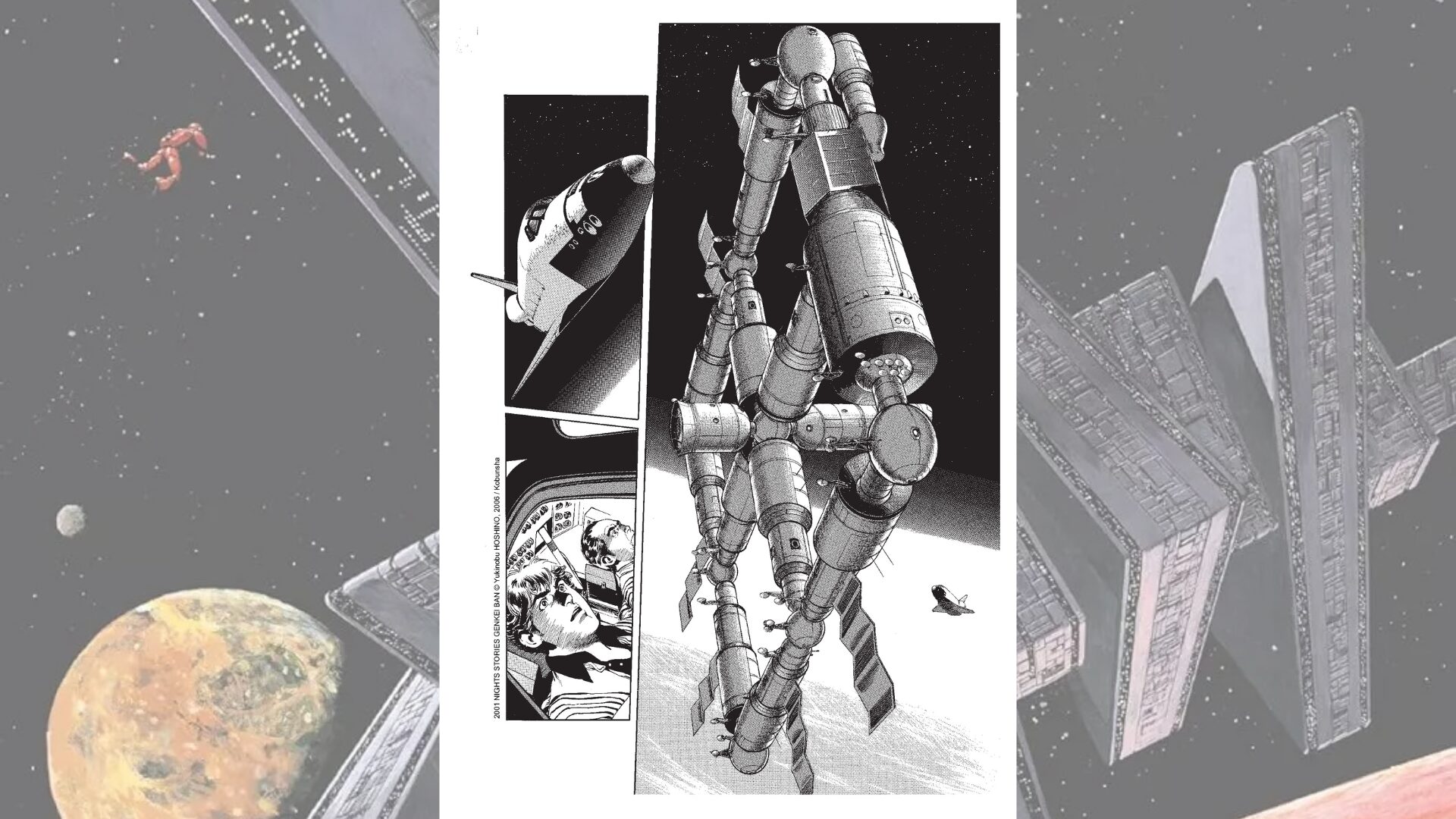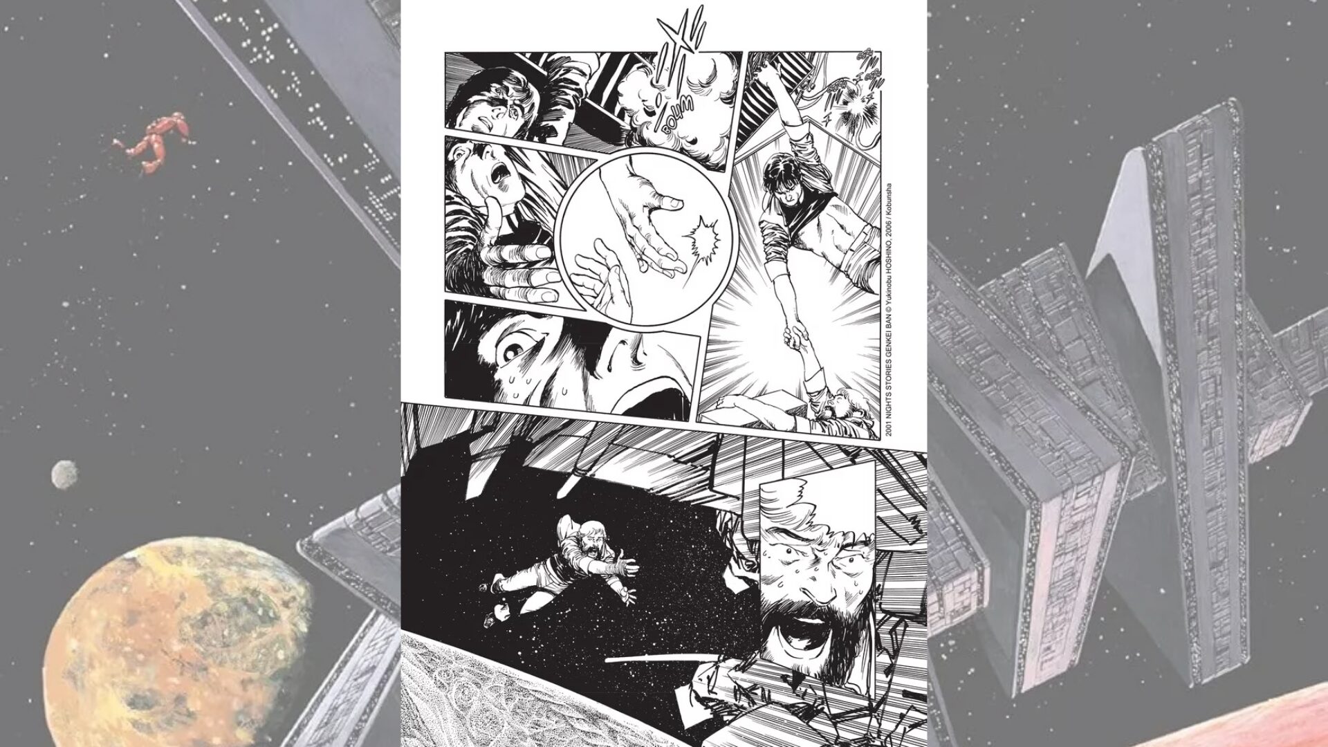 Après avoir surmonté une guerre nucléaire totale, l’humanité découvre un morceau de météorite géante : c’est le début d’une ruée vers de nouvelles ressources naturelles et de la découverte de l’univers. Le manga suit l’épopée de l’être humain, du système solaire jusqu’aux galaxies les plus éloignées. 2001 Nights Stories est une relecture du film de Stanley Kubrick, paru chez Glénat dans une réédition en deux volumes en version cartonnée.