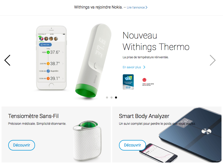 Nokia a annoncé ce matin par un communiqué de presse son intention de racheter Withings pour 170 millions d’euros. Cette transaction devrait être effective au troisième trimestre fiscal 2016, si tout se passe bien. Pourquoi mettre le grappin sur Withings ? Nokia estime qu’il s’agit d’un premier pas dans sa grande stratégie liée à la santé connectée. Withings est connu pour ses montres connectées fort élégantes et pour ses bracelets connectés censés mesurer l’effort. Ce secteur déjà bien occupé par des firmes comme FitBit, Jawbone ou Apple est en pleine expansion et devrait être le marché à la plus forte croissance entre 2015 et 2020, toujours d’après Nokia.