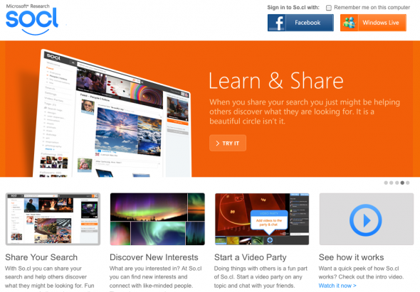 Quelques bonnes idées sont quand même à noter et peuvent justifier que les internautes s’attardent sur le site malgré ses ressemblances avec la concurrence. Ainsi, la recherche est centrale et permet de partager ses résultats très simplement avec son réseau. Les étudiants étant la cible de So.cl, si l’un d’entre eux trouve des articles pertinents pour un devoir, il pourra facilement en faire profiter ses camarades d’un simple clic. Les « video parties » sont également intéressantes. Elles permettent à plusieurs membres de créer des listes de vidéos qu’ils peuvent ensuite regarder ensemble, chacun devant son ordinateur.