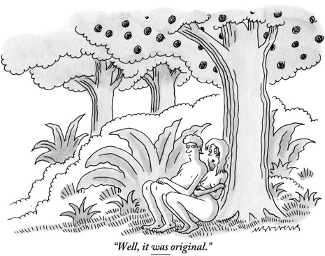 C'est la mésaventure qui est arrivée récemment au célèbre magazine américain The New Yorker. Celui-ci dispose d'une page sur Facebook où l'internaute peut voir de nombreux dessins de presse publiés par l'hebdomadaire depuis les années 1930. La dernière d'entre elle représente Adam et Ève adossés à un pommier, en train de discuter. Et c'est ce dessin-là qui a posé problème.