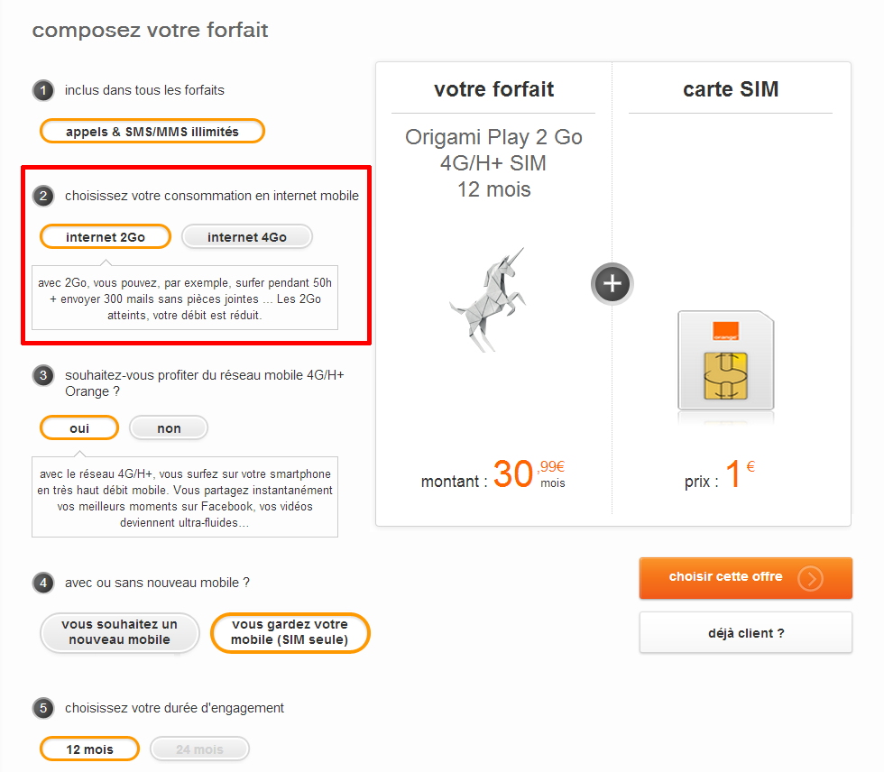 Côtés forfaits, la 4G nécessite au minimum un forfait Orange Origami Play + option 4G, le tout facturé 30,99 euros par mois avec engagement sur 12 mois. A ce prix, les clients n'ont droit qu'à 2 Go de données avant réduction du débit. De quoi limiter drastiquement l'intérêt réel de la 4G.