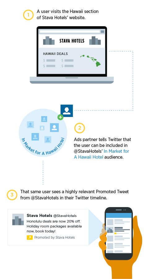 Selon les explications de Twitter, cela marche ainsi : un visiteur se rend sur un site lambda. Ce dernier, qui ne désire toucher que ceux potentiellement intéressés par ses produits, partage les informations de navigation du visiteur à Twitter, via un partenaire publicitaire (browser cookie ID). Twitter croise ensuite ces données avec les siennes afin de ne diffuser les tweets sponsorisés que vers ses membres qui ont visité le site.