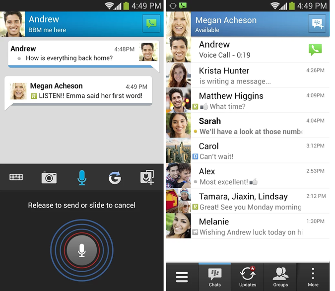 Disponible sur les téléphones Blackberry, le nouveau BBM est aussi proposé sur Android et sur iOS, avec une série de fonctionnalités qui pourraient convaincre ceux qui cherchent une alternative intéressante à Skype, mais également les jeunes qui utilisent davantage WhatsApp, Facebook ou Google Hangouts.