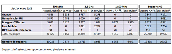 Au total, Free Mobile dispose de 2784 supports 4G en fonctionnement sur le territoire national contre 3031 pour Numericable-SFR. L'écart entre les deux opérateurs n'est plus que de 247 supports, contre 536 en janvier et 741 en décembre. À ce rythme, et si SFR n'accentue pas son effort, Free Mobile pourrait avoir activé un nombre plus important d'antennes-relais que son rival ce mois-ci.
