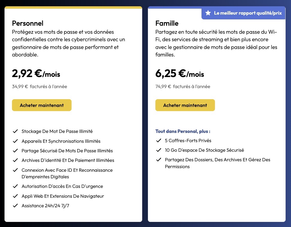 Notez que Keeper propose par ailleurs des tarifs adaptés aux étudiants (-50 % sur l’abonnement annuel) comme aux militaires et personnels de santé (-30 %). De nombreuses formules dédiées aux entreprises sont aussi proposées sur devis.