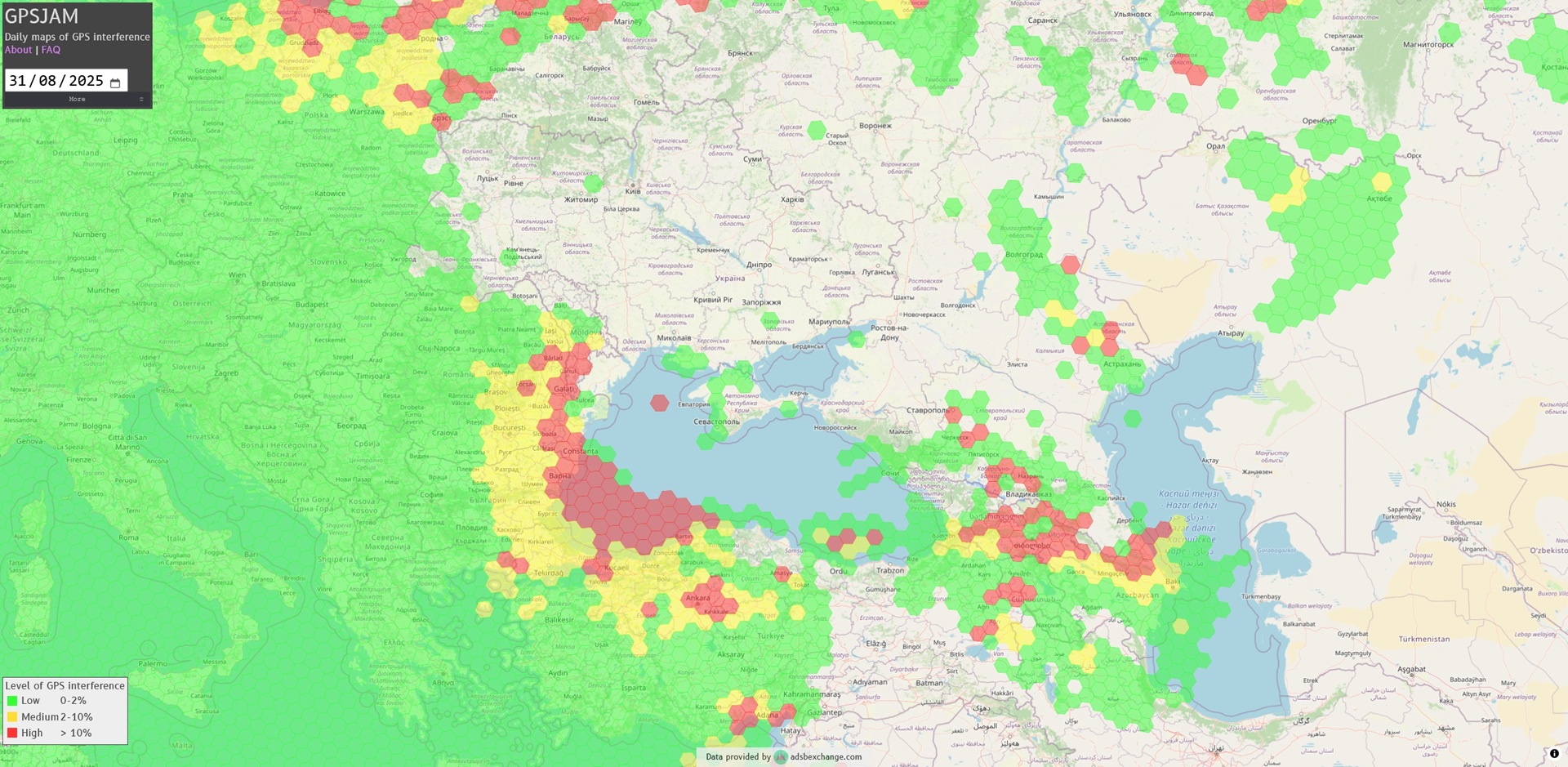 En Europe, on retrouve notamment des épisodes intenses de brouillage GPS autour de Kaliningrad, l’exclave russe nichée entre la Pologne et les pays baltes, mais également le long de l’ouest de la mer Noire, avec parfois des débordements significatifs en Roumanie et en Pologne. On relève aussi des perturbations en Pologne et en Finlande.