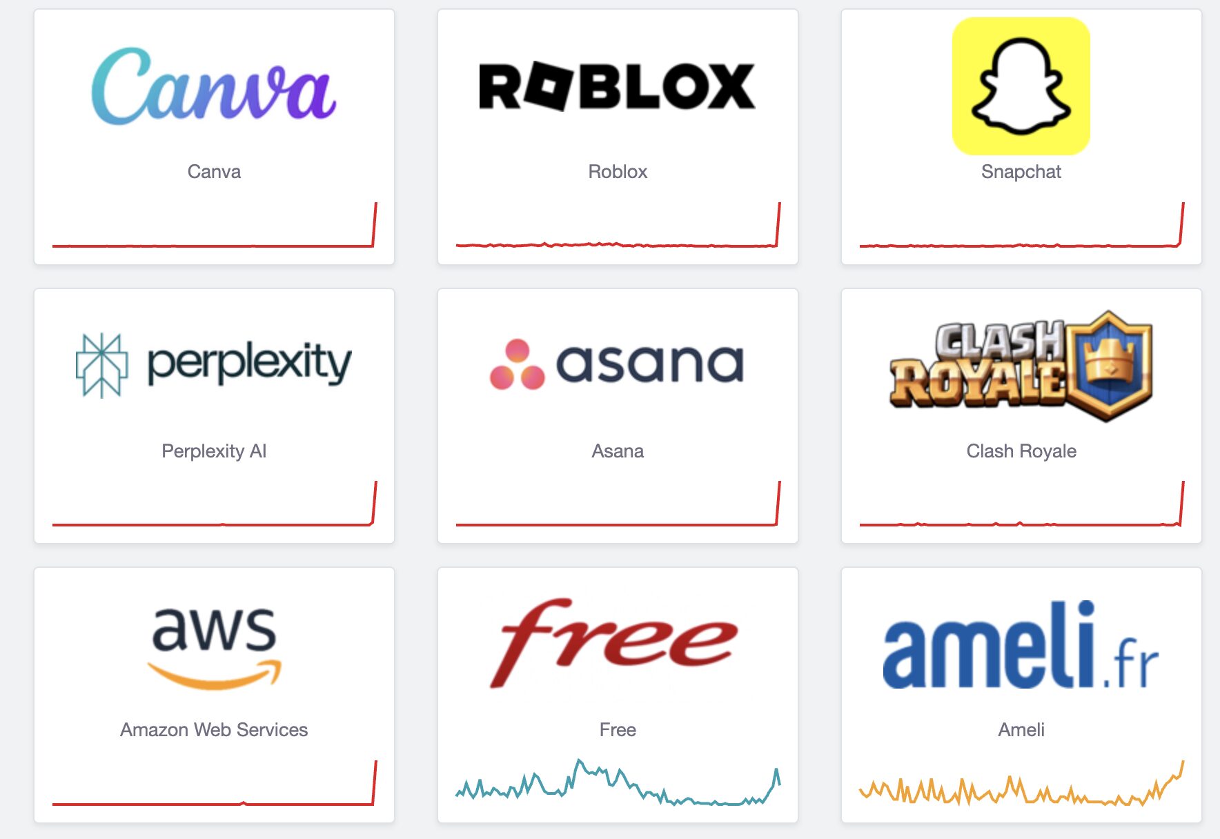 Canva, Perplexity, Snapchat, Fortnite, Amazon Web Services, entre autres, faisaient partie de la liste des services indisponibles.