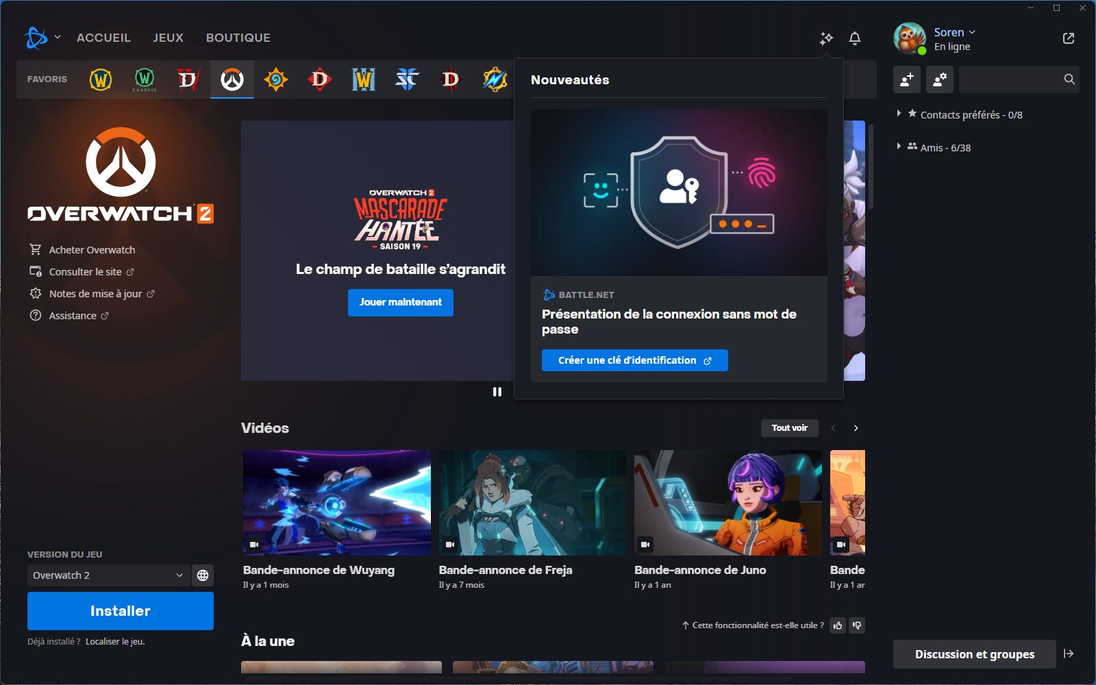 C’est une application que les joueurs et les joueuses connaissent bien, en tout cas celles et ceux qui jouent aux jeux de Blizzard. Battle.net est le logiciel incontournable pour lancer une petite partie sur World of Warcraft, Diablo 4 ou Overwatch 2. Ce lanceur regroupe en un seul endroit toute la logithèque du studio américain, si on a acheté les titres.