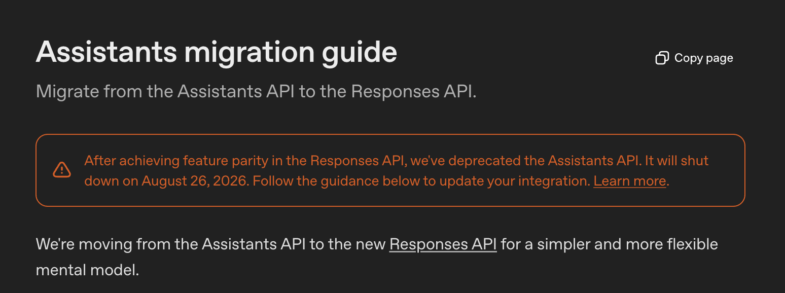 La suppression d’OpenAI Assistants avait déjà été actée en amont de cette affaire. L’outil doit être supprimé en août 2026, les utilisateurs sont invités à migrer vers Responses API.