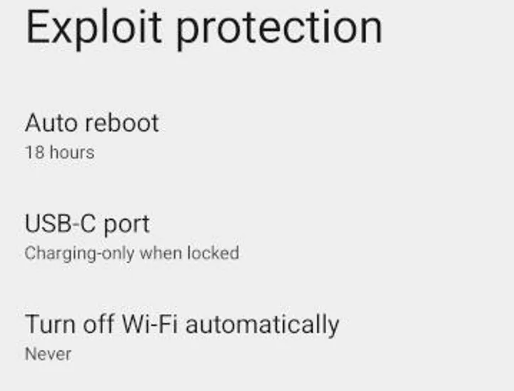 GrapheneOS prend ensuite l’apparence du Android-stock, sans surcouche, avec seulement 14 applications préinstallées. Tous les services Google sont supprimés : il n’y a que le téléphone, les messages, l’appareil photo, la galerie, etc. Un App Store permet d’installer des applications vérifiées sans passer par le Play Store. Enfin, dans les réglages, des sécurités inédites existent. Elles permettent d’automatiquement désactiver le Wi-Fi ou le Bluetooth, de sécuriser le port USB, de redémarrer le téléphone régulièrement et d’empêcher les exploits plus poussés. GrapheneOS n’est pas conçu pour utiliser Facebook ou TikTok.