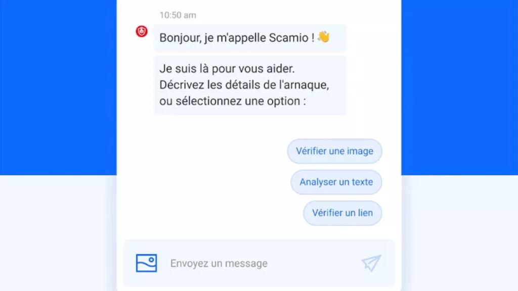 Premier outil à connaître : Scamio. Totalement gratuit et simple à utiliser, ce chatbot s’avère très utile en cas de doute.