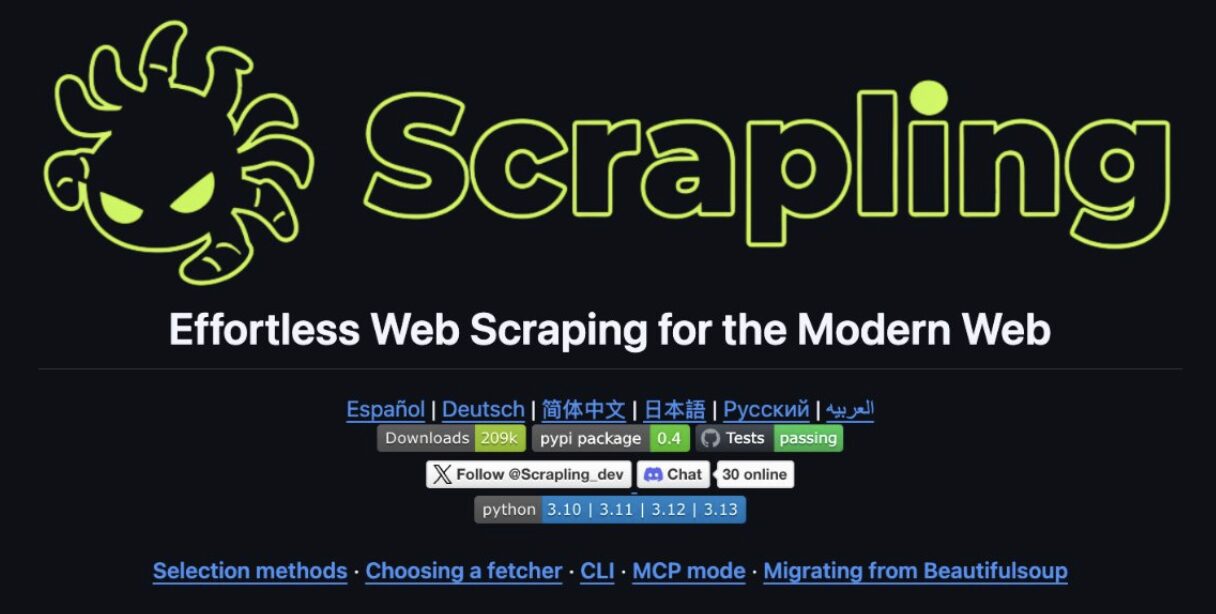 « Discrétion », car ce qui distingue particulièrement Scrapling de ses concurrents, c’est sa capacité à contourner les protections mises en place par les plateformes de cybersécurité pour prévenir ce type de pratique.