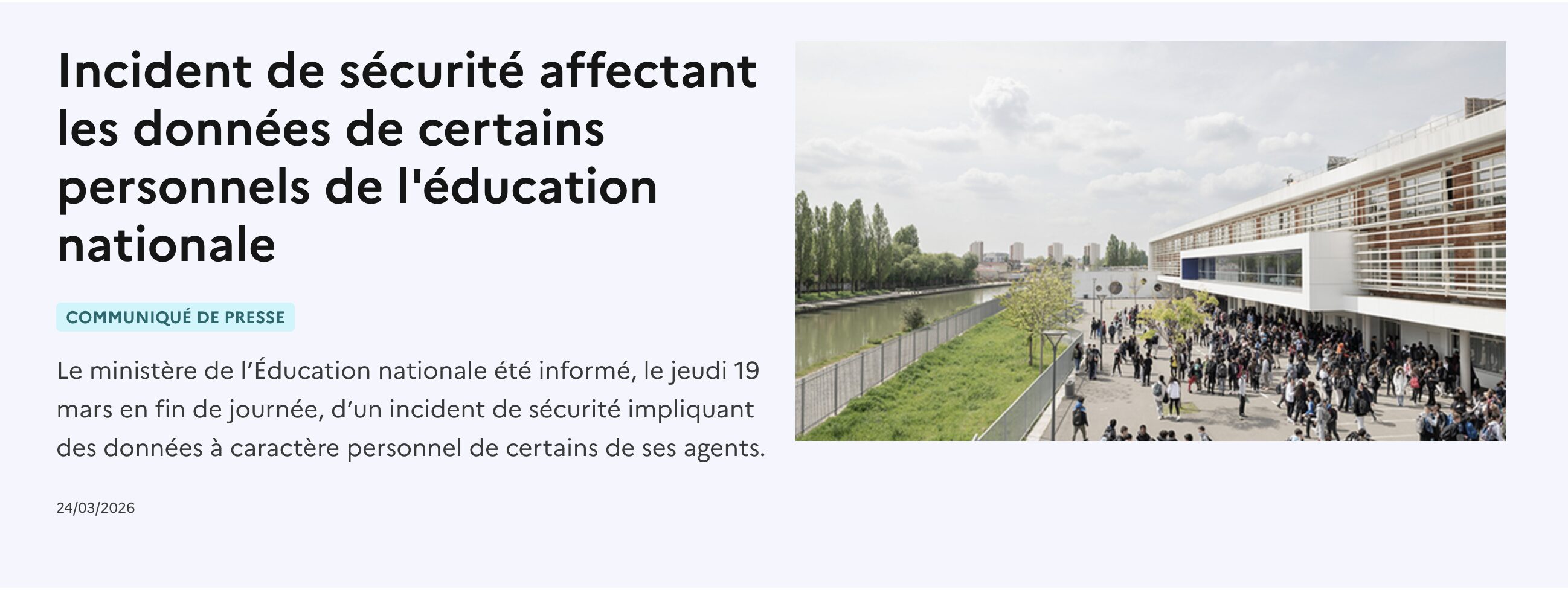 Pas de données médicales, pas de numéros de sécurité sociale. Mais l’ensemble forme un profil exploitable pour des campagnes de phishing ciblé ou des tentatives d’usurpation d’identité. Le ministère a d’ailleurs appelé ses agents à la vigilance face à tout message suspect prétendant provenir de l’institution.