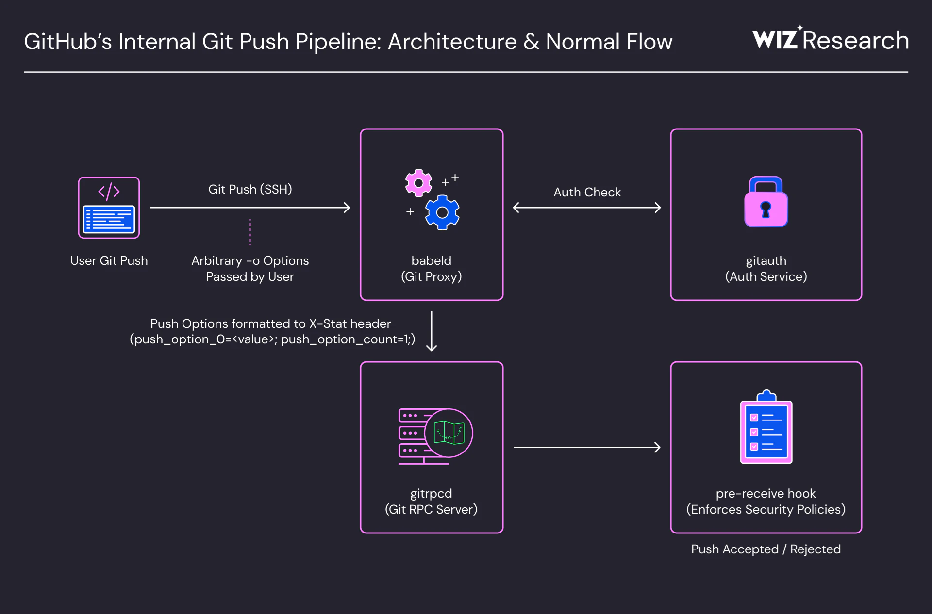 Sur GitHub Enterprise Server, l’exploitation était directe. Sur GitHub.com, une subtilité supplémentaire entrait en jeu : les custom hooks sont désactivés par défaut sur la plateforme cloud. Mais Wiz a découvert qu’un flag supplémentaire dans le même header, contrôlant l’activation du mode Enterprise, était lui aussi injectable via le même mécanisme. Une injection de plus, et la chaîne complète fonctionnait.