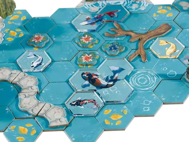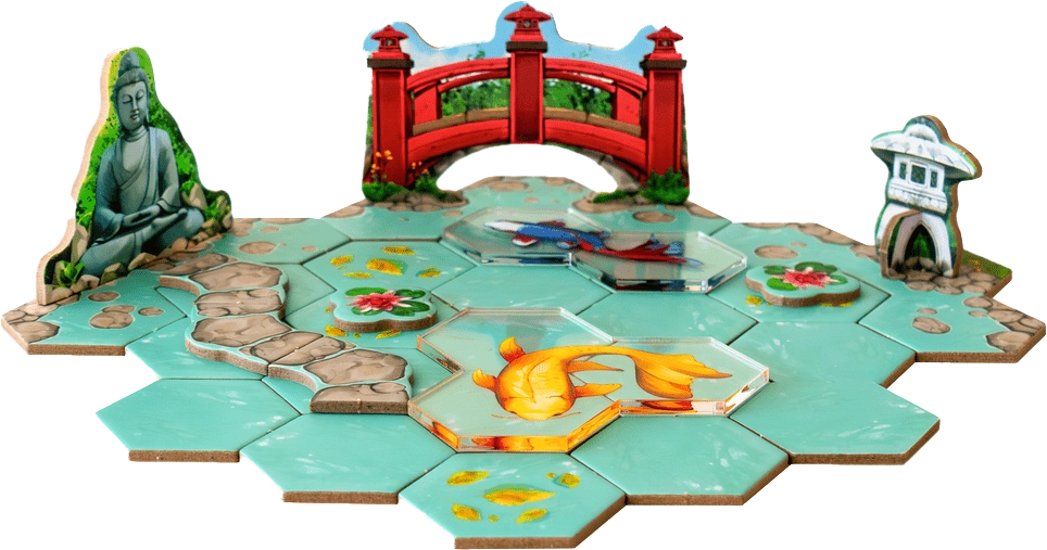 Koi est un jeu de tuiles plutôt accessible où vous construisez progressivement un bassin de carpes koï en alternant entre récupération de cartes et actions, avec une vraie dimension de planification. Séduisant par son matériel et son ambiance, il propose une expérience stratégique, mais fluide, malgré une fin parfois trop rapide. Idéal à deux ou trois joueurs, il plaira aux amateurs de jeux où l’on construit quelque chose de zéro.