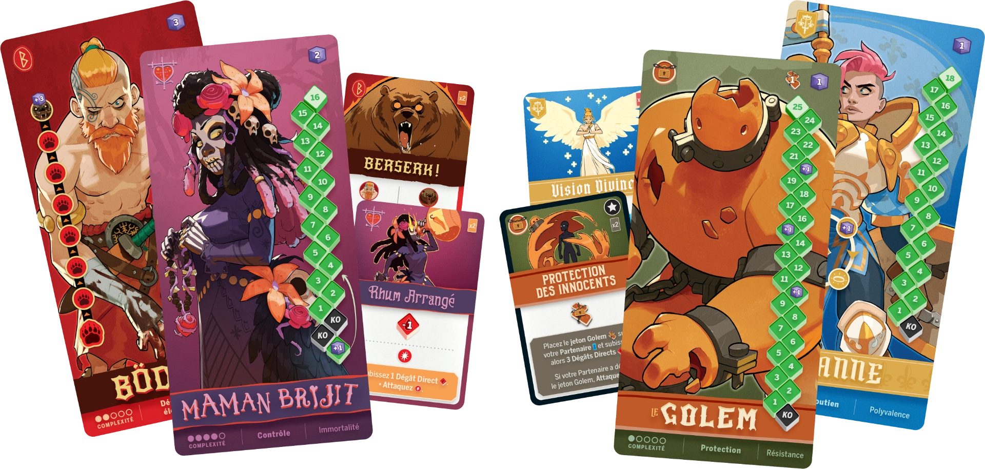 Transposant l’esprit des jeux de baston sur une table, Tag Team est un auto-battler nerveux et accessible où deux équipes de combattants hauts en couleur s’affrontent à coups de cartes et de stratégie. Simple à apprendre, mais riche à maîtriser, il combine deckbuilding, bluff et tension dans des duels aussi rapides qu’intenses.