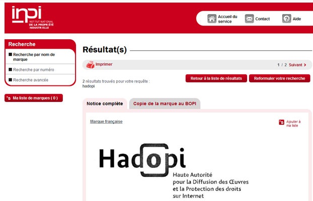 Pour l’heure, la typographie enregistrée à l’Institut National de la Propriété Intellectuelle (INPI) reste inchangée : il s’agit toujours de la police de caractère protégée par les droits de France Télécom et de Jean-François Porchez.. Un logo piraté et enregistré à l’INPI. Voilà qui fait tâche pour l’acte de naissance de la Haute Autorité !