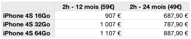 L’iPhone 4S est disponible depuis ce vendredi en France est les opérateurs proposent des offres différentes parmi lesquelles il est parfois difficile de s’y retrouver. Numerama a donc compilé les différentes offres et les différents tarifs proposés et les présente opérateur par opérateur avec le prix total à l’année