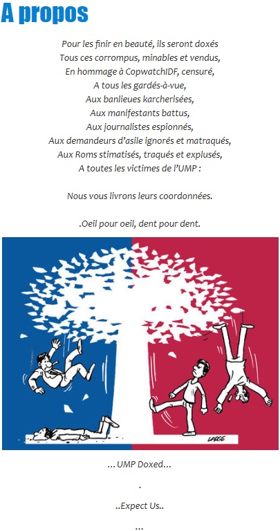 Difficile de savoir quel sera l’objectif final des pirates qui ont mis la main sur ces informations et commencé à les diffuser sur un site créé pour l’occasion (DoX UMP). Dans la mesure où ces données nominatives très critiques appartiennent à des membres éminents de l’UMP, on peut raisonnablement imaginer qu’il y a une motivation politique derrière ce piratage. Une impression renforcée par ce texte :