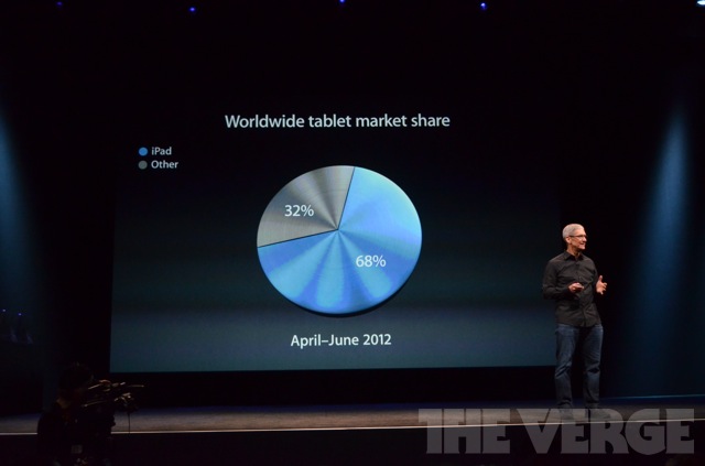 19h05 : Un point sur les Mac. "Nous avons connu un été extraordinaire" affirme Cook. 7 millions de copies de Moutain Lion ont été téléchargées. Sur les 3 derniers mois, les Macbook (Air et Pro) ont été numéro un des ventes aux Etats-Unis.