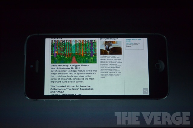 19h44 : La démonstrations d'iOS ressemble beaucoup à celle faite en juin lors de la WWDC. Safari peut s'afficher en plein écran. Pour le reste, l'affichage est simplement un peu plus grand grâce à l'écran 4 pouces.