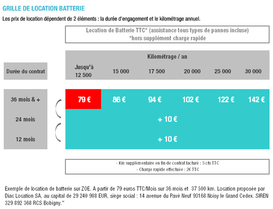 C'est une petite révolution dans l'industrie automobile. Lorsque vous achetez une voiture électrique Renault ZOE, à un prix pourtant similaire à toute autre voiture de même catégorie, vous n'en devenez pas pleinement propriétaire. Le conducteur doit en effet louer la batterie pour un prix qui oscille de 79 euros par mois à 142 euros en fonction du nombre de kilomètres par an prévus au contrat. "Quelle que soit votre formule d’acquisition du véhicule (achat ou location), la batterie sera toujours en location (…) afin de garantir un prix d’achat (hors batterie) proche de celui d’un véhicule thermique de la même catégorie", justifie Renault sur son site internet.