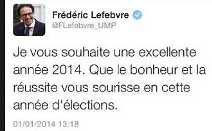 Qui n'a jamais fait de faute d'orthographe voire de grammaire (certainement pas Numerama qui doit malheureusement plaider coupable beaucoup trop souvent) ? Ce mercredi 1er janvier, peut-être mal remis d'une courte nuit de sommeil, le député UMP Frédéric Lefebvre a publié un tweet qui a fait sourire plus d'un internaute par sa grammaire douteuse. "Que le bonheur et la réussite vous sourisse", pouvait-on lire sur le message.