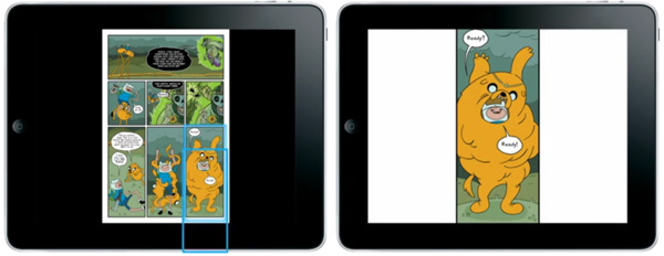 L'une des principales innovations de ComiXology est sa technologie "Guided View", qui permet de lire les bandes dessinées en plein écran, case par case, dans l'ordre voulu par l'auteur :