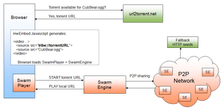 Pour y parvenir, l’auteur a annoncé que la fondation Wikimedia va s’appuyer sur P2P-Next, une solution développée par l’université de technologie de Delft (Pays-Bas) et qui a reçu 15 millions d’euros de financement public de la part de l’Union européenne. P2P-Next est soutenu notamment par la BBC, Pioneer et l’Union des Diffuseurs Européens et qui a intéressé la plate-forme Mininova dans le cadre de la vidéo distribuée.
