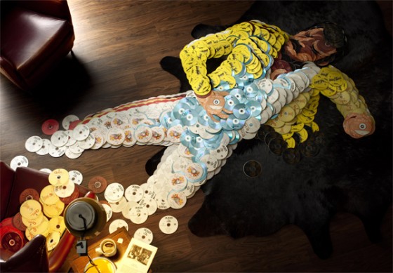 Repérée par Fubiz, la campagne est destinée au site First Floor Under. Six affiches ont été réalisées, ainsi qu’une vidéo. Il aura fallu plus de 6 500 CD et 200 heures de travail pour recréer des grandes figures de la musique : Freddie Mercury, Jimi Hendrix, Bob Marley, Jim Morrison, James Brown ou encore Elvis Presley. Quant à la vidéo, en stop motion, elle met en scène Michael Jackson.