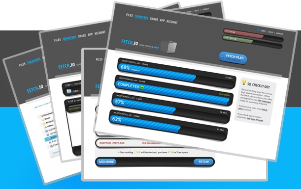 Dernier service en date, Fetch.io. Tout comme Put.io ou Torrific, le site propose de récupérer un fichier à votre place depuis n’importe quelle source : BitTorrent, RapidShare, MegaUpload, MediaFire, HotFile, NetLoad, FileSonic, Easy-Share, MegaShares ou encore FileServe. Actuellement en phase de test, le service est gratuit. Il propose un espace de stockage de 20 Gb et une bande-passante mensuelle de 40 Gb.
