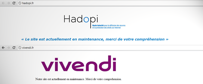 Qu’est-ce qui rapproche l’Hadopi et Vivendi ? Ce lundi matin, la réponse est simple : leurs deux sites officiels affichent le même message d’indisponibilité suite à des attaques lancées par des défenseurs de MegaUpload :