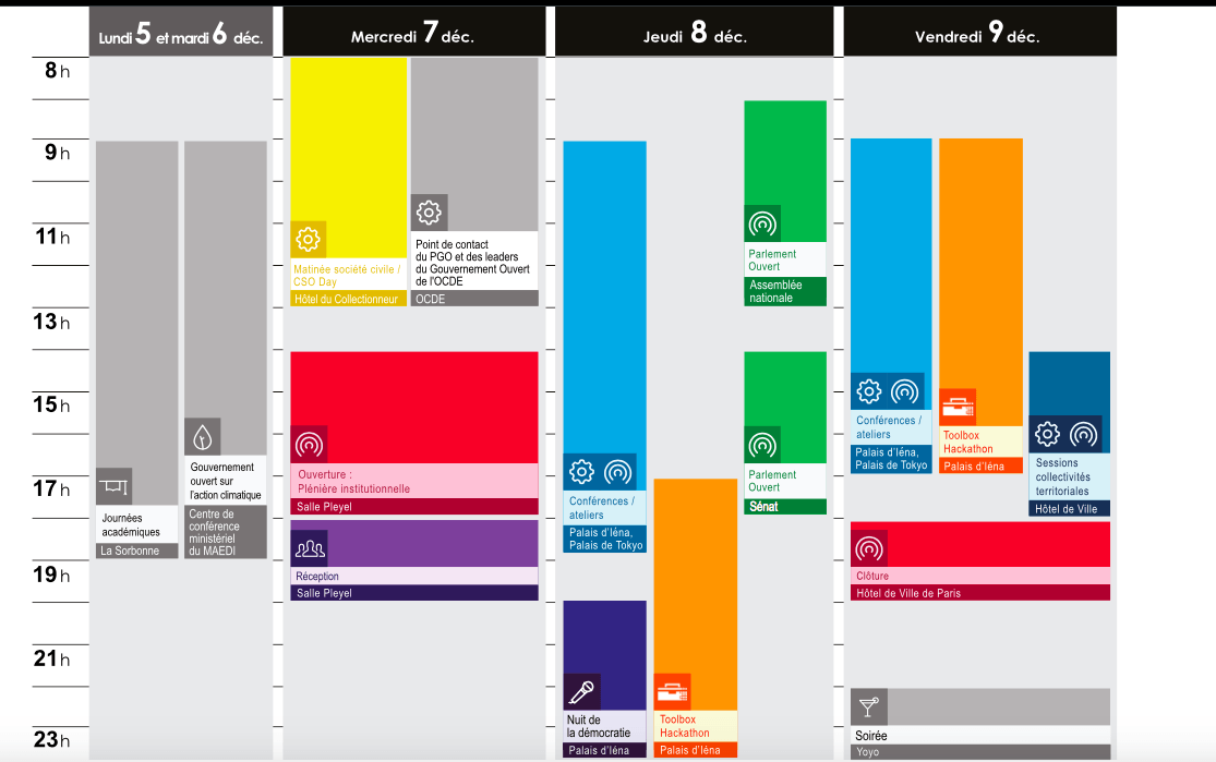 La France, qui a rejoint l’OGP en 2014, en assure cette année la co-présidence avec l’ONG de ressources naturelles World Resources Institute. À ce titre, elle organise donc son 4e sommet du 7 au 9 décembre, à Paris. La capitale fait partie des 15 gouvernements locaux — Madrid, Buenos Aires, Sao Paulo… — sélectionnés pour le programme pilote de l’initiative.