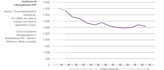 Elle a en effet choisi de sélectionner et de croiser différentes sources en empruntant ici une étude de l’IFPI (le lobby international des maisons de disques), là une expertise de la société anti-piratage Peer Media Technologies, ou ici encore une étude menée par TMG pour l’Association de Lutte contre la Piraterie Audiovisuelle (ALPA). Toutes affirment une même tendance baissière dans l’usage du P2P en France de 17 % à 66 % selon les mesures, sans que l’on puisse véritablement vérifier la méthodologie mise en œuvre, faute d’avoir rendu publiques ces différentes études.