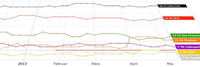 Au niveau national, les sondages placent le Parti Pirate en quatrième force politique du pays, juste derrière les Verts :