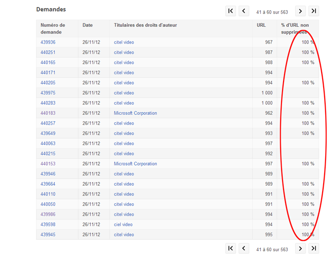 Google refuse de supprimer les URL si "nous n'avons pas trouvé l'atteinte aux droits d'auteur indiquée, nous avions déjà examiné les URL lors d'une précédente demande, (ou) les URL étaient incorrectes ou entraînaient une erreur".