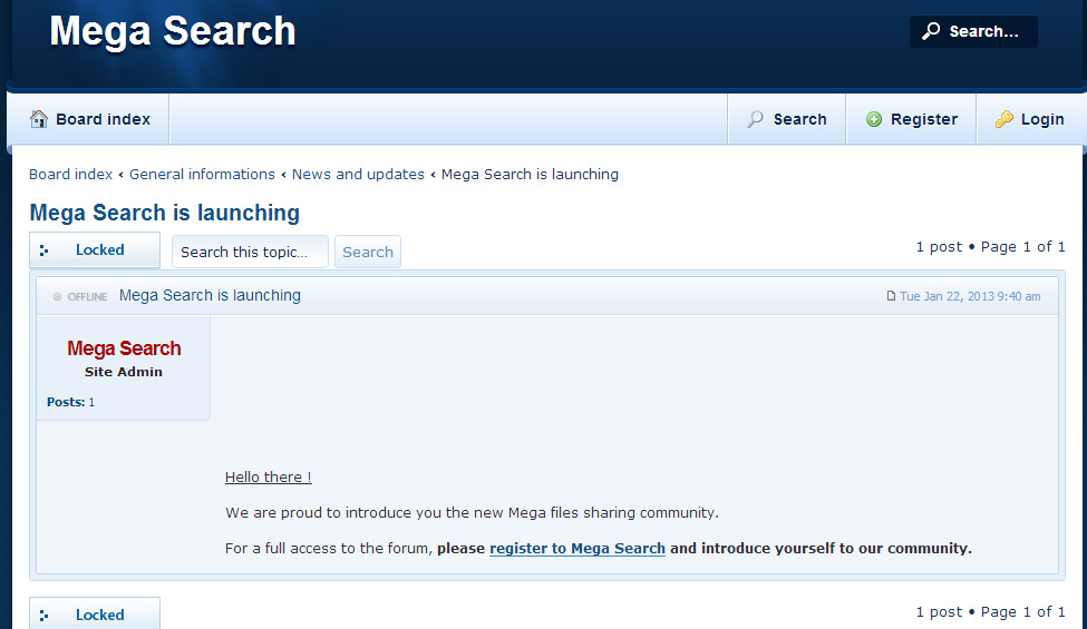 Sans surprise, des boards warez à l'ancienne se montent également pour tenter de surfer sur le nouveau créneau ouvert par la mise en ligne de Mega, dont certaines sont déjà actives. Nul doute que les ayants droit misent beaucoup sur les conclusions de la mission Lescure pour disposer de nouvelles armes pour les frapper, soit en attaquant leurs moyens financiers (en particulier les contrats publicitaires), soit en obtenant des mesures de filtrage.