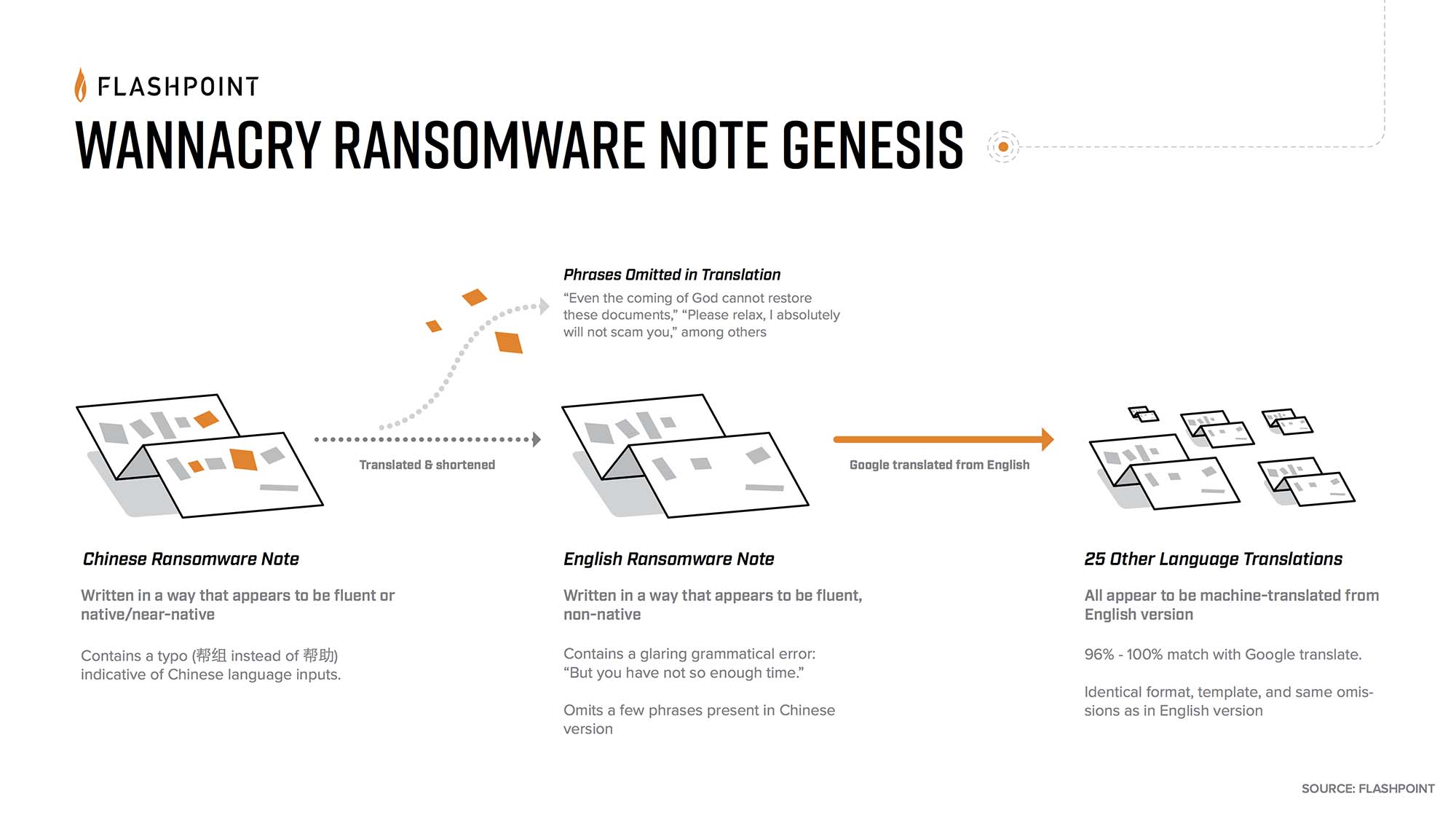 C’est l’hypothèse que défend Flashpoint, une société de sécurité informatique, après avoir effectué une analyse linguistique des consignes qui figurent dans le logiciel. La version chinoise de WannaCrypt est l’une des deux seules — avec l’anglais — à avoir été écrite par quelqu’un. Or, la version anglaise comporte des formulations curieuses contrairement à la déclinaison chinoise.