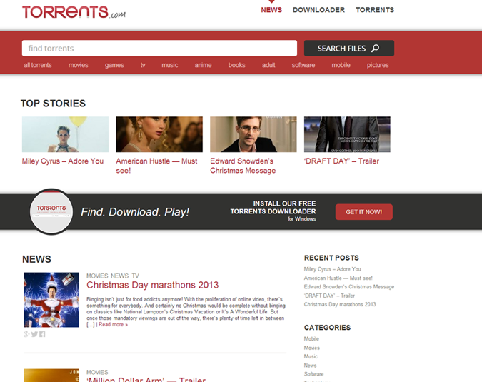 Torrents.com : un site d'actualités people et loisir, avec une ligne éditoriale fortement orientée vers le cinéma, les séries TV et les sorties d'albums musicaux.