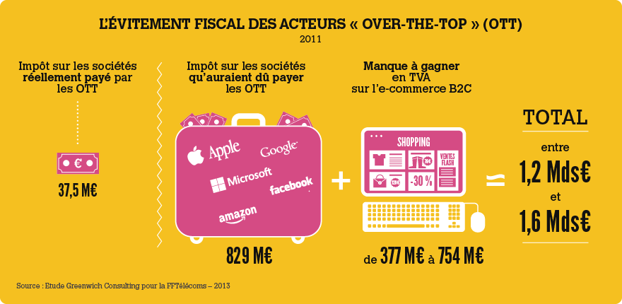 Le rapport permet à la Fédération de vanter les mérites de ses membres, et de pointer au contraire du doigt les acteurs de l'internet "Over-The-Top" (OTT), comme Google, Facebook, Amazon,… ou Numerama et votre artisan du coin, qui utilisent les réseaux des opérateurs pour proposer leurs services aux abonnés des FAI, alors qu'eux ne contribuent pas ou très peu à l'économie. C'est en tout cas le discours qui transparaît, et qui prépare une lutte féroce contre la neutralité des réseaux, en justifiant de privilégier des services gérés ou taxés par les FAI au détriment des OTT, au nom d'un prétendu "mérite" économique.