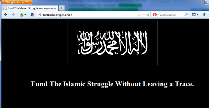 Le cabinet prétend en effet aujourd'hui avoir découvert grâce à ses logiciels de surveillance du web une page de demande de dons en Bitcoins cachée au fin fond du Dark Web anonymisé par Tor, alors que Freebeacon avait déjà dévoilé son existence en 2013. La page prétend être créée par un "groupe de frères musulmans" qui souhaitent "établir un nouveau front islamique à la fois aux USA et à travers le monde", et qui demande de l'argent pour soutenir la cause.