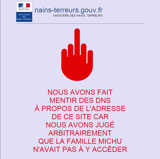Dès la mise en oeuvre des premiers blocages, la main rouge était devenue un symbole repris par des internautes pour contester la censure sans contrôle judiciaire, et l'arbitraire de l'exécutif (contre lequel nous avons décidé de nous battre). Certains y avaient également découvert une référence involontaire et maladroite au groupe terroriste La Main Rouge des années 1950, qui pourrait en fait avoir été une création des services secrets français.