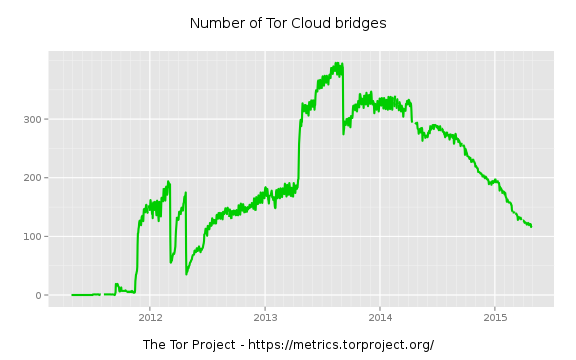 Lors du lancement du projet, l'équipe de Tor espérait voir se multiplier les bridges sur Tor Cloud, pour rendre plus difficile le blocage des relais. Les bridges ne sont pas répertoriés publiquement, et sont donc plus difficiles à découvrir pour les autorités qui souhaiteraient en interdire l'accès. Mais Tor Cloud n'a jamais attiré la communauté de développeurs bénévoles qu'il nécessitait, et les images fournies n'étaient plus fonctionnelles, avec de nombreux bugs à corriger.
