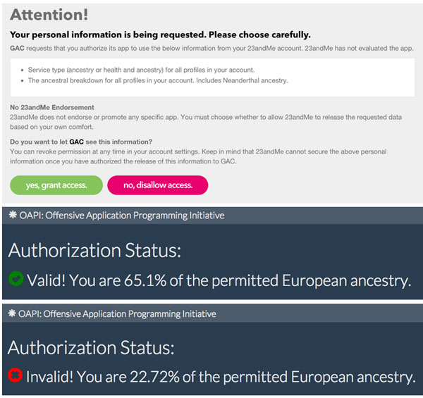Le script mis en ligne sur GitHub permet donc aux développeurs d'exploiter l'API de 23AndMe comme mode d'authentification de l'utilisateur, afin de les autoriser ou non à accéder à un service. Son créateur, dont on ne sait pas très bien s'il est sérieux ou s'il veut dénoncer un eugénisme moderne — même si l'on penche pour cette dernière option, propose différents scénarios d'utilisation qu'il dit être légitimes :