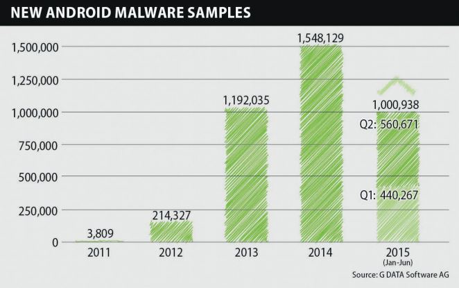 De façon plus générale, G Data estime que la situation ne va pas aller en s'arrangeant : alors que les systèmes d'exploitation Android représentent environ deux tiers des terminaux dans le monde, les logiciels malveillants visant l'OS de Google sont de plus en plus nombreux. Entre les deux premiers trimestres, 560 671 nouvelles traces ont été analysées, soit une hausse de 27 % par rapport au début de l'année.