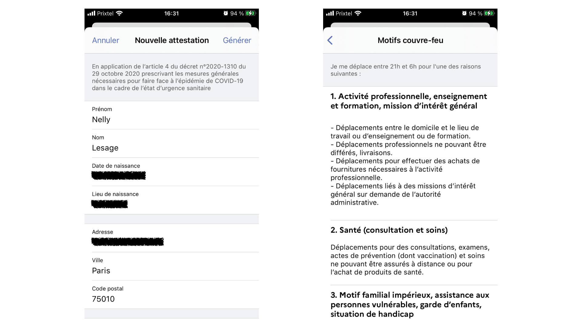 - Attestation pour les zones en couvre-feu en format PDF