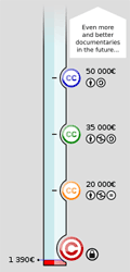 Avec 50.000 €, le dernier pallier, les droits d’exploitation commerciale seront libérés. Les documentaires seront considérés comme financés entièrement, y compris par la rémunération de trois personnes qui ont quitté leur emploi en juillet 2007 pour réaliser ces films. Seule l’obligation de citer Loin de L’Oeil et de garder la licence Creative Common BY-SA reste en vigueur. Les documentaires pourront être vendus en DVD ou diffusés à la télévision sans avoir à en demander l’autorisation, et sans devoir payer quelle que somme que ce soit.