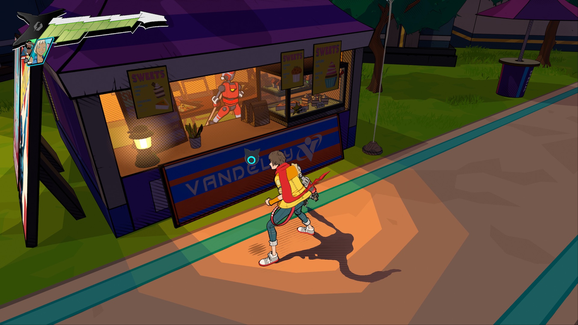 Il y a ensuite cette partie visuelle qui enchante du début à la fin, soulignée par une solidité technique à montrer dans les écoles (c’est toujours fluide). Le rendu est pétillant et inspiré, avec un design global espiègle. Le look des méchants n’effraiera pas grand monde, comme si Tango Gameworks voulait exorciser ses démons du passé et oublier cette quête de l’immonde dans les deux The Evil Within. Il y a même un chat robot mignon dans Hi-Fi Rush (que l’on peut bien entendu « pet » dès que l’occasion se présente). Les développeurs sont allés jusqu’à incruster des références plus ou moins évidentes (du Twin Peaks, la série culte de David Lynch), voire de l’autocitation (le héros de The Evil Within participe à un running gag).