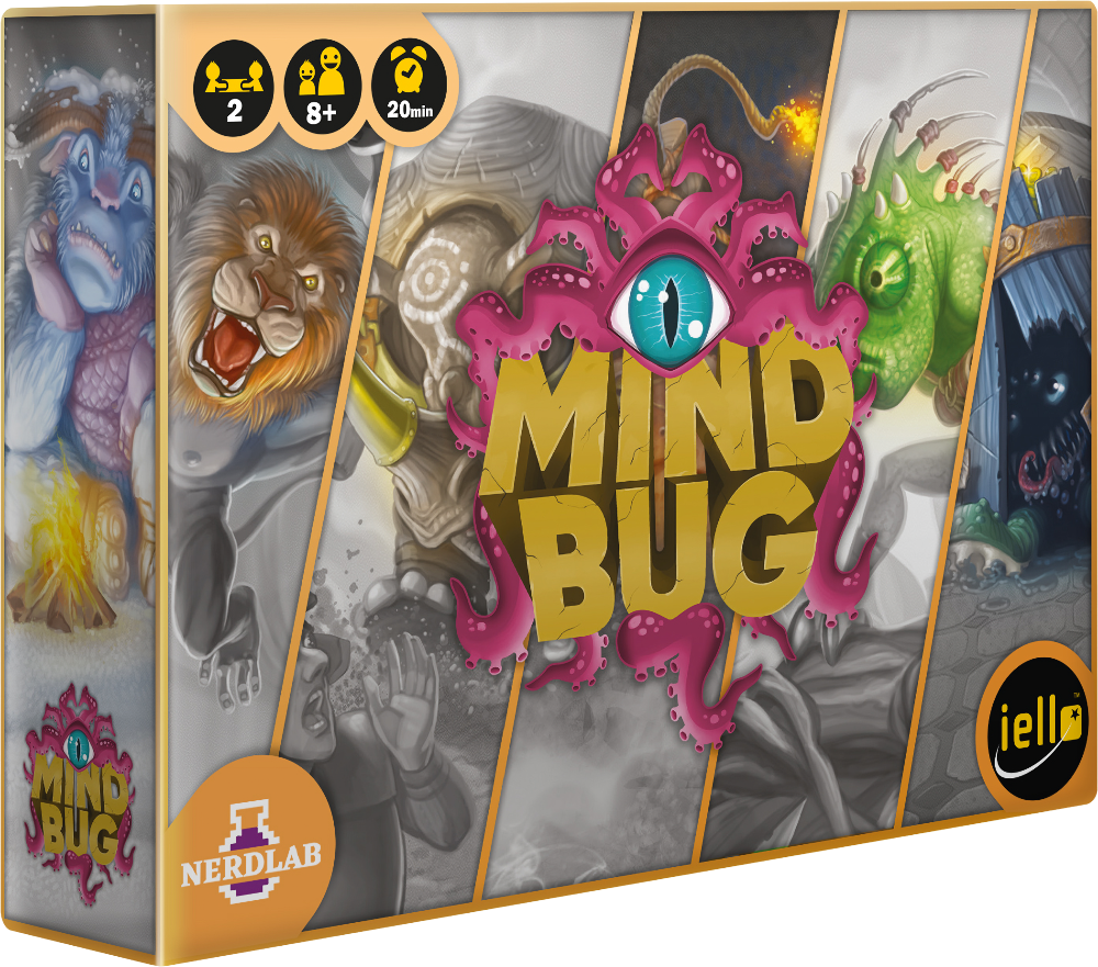 Édité par Iello, Mindbug est un jeu de Skaff Elias, Richard Garfield, Marvin Hegen et Christian Kudahl, illustré par Denis Martynets, commercialisé au prix de 15,90 € chez Philibert.